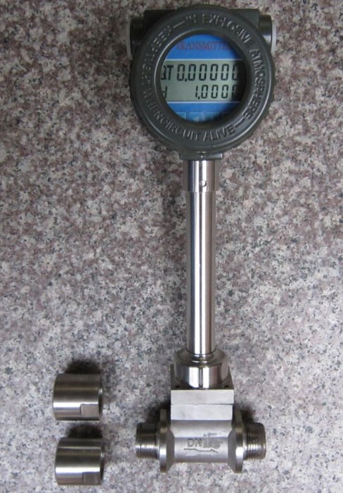 由上式可見,VSF輸出的脈沖頻率信號不受流體物性和組分變化的影響,即儀表系數(shù)在一定雷諾數(shù)范圍內(nèi)僅與旋渦發(fā)生體及管道的形狀尺寸等有關(guān)。但是作為流量計(jì)在物料平衡及能源計(jì)量中需檢測質(zhì)量流量,這時流量計(jì)的輸出信號應(yīng)同時監(jiān)測體積流量和流體密度,流體物性和組分對流量計(jì)量還是有直接影響的。
