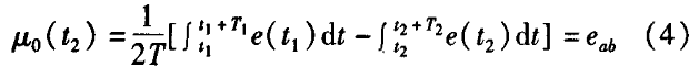 冷熱水流量計(jì)一般都采用工頻交流電源供電,其電源電壓的幅值和頻率的變化都會給冷熱水流量計(jì)帶來電源性干擾噪聲。對電源電壓的幅值變化,因采用多級集成穩(wěn)壓,一般而言電源電壓的幅值變化對電磁流量的測量精度影響不大。當(dāng)電源電壓的頻率波動(dòng)時(shí),雖然其波動(dòng)范圍有限,但對冷熱水流量計(jì)測量精度影響較大。為了解決工頻干擾問題,實(shí)現(xiàn)對流體流速感應(yīng)電勢e柚信號的準(zhǔn)確測量,需利用以下基本關(guān)系:①勵(lì)磁周期為工頻周期的整數(shù)倍,即勵(lì)磁頻率為50/nHz(n為偶數(shù));②正負(fù)勵(lì)磁下的同相位采樣。圖2是對應(yīng)低頻矩形波勵(lì)磁形式下的典型電勢信號形式,按上述關(guān)系在一個(gè)勵(lì)磁周期下,若假設(shè)t。和t:點(diǎn)為工頻干擾的等效干擾點(diǎn),且采樣寬度T=T1=T2,則e –ab的基本算式為:,