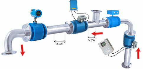 3、由于感應(yīng)電壓信號(hào)是在整個(gè)充滿磁場(chǎng)的空間中形成的,是管道載面上的平均值,因此傳感器所需的直管段較短,長(zhǎng)度為5倍的管道直徑。