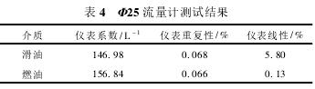 Φ25流量計測試數(shù)據(jù)如表3所示。