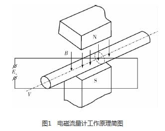 硝酸管道流量計是利用法拉*電磁感應(yīng)定律設(shè)計的流量測量儀表,用于測量導(dǎo)電液體的體積流量。根據(jù)法拉*電磁感應(yīng)定律,當(dāng)導(dǎo)體切割磁力線運動時,導(dǎo)體內(nèi)將產(chǎn)生感應(yīng)電動勢Ex(圖1),方向根據(jù)右手定則確定,感應(yīng)電動勢Ex的大小與磁場的磁感應(yīng)強(qiáng)度B、傳感器管道的內(nèi)徑D和流過導(dǎo)電液體的流速V成正比,B、D、V三者相互垂直,即Ex=BDV。