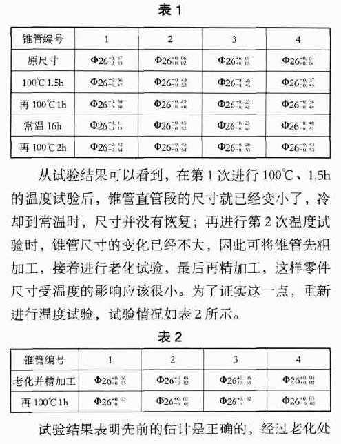 理后再精加工的錐管完全能夠達(dá)到設(shè)計(jì)要求。經(jīng)過數(shù)次試驗(yàn),可以得出如下結(jié)論:耐腐型浮子流量計(jì)錐管的加工工藝和基型產(chǎn)品有很大不同,合理的工藝過程應(yīng)該是粗加工錐管→老化(100℃、2 h)→精加工成形。
