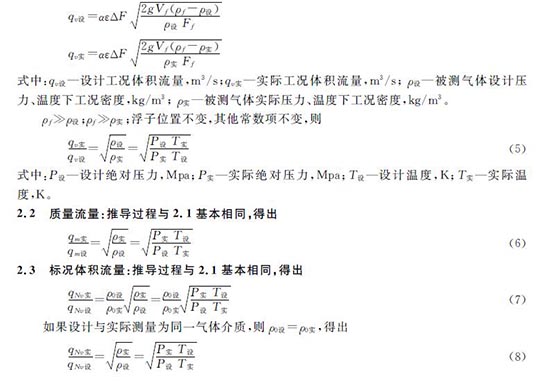 流量計(jì)在測(cè)量氣體介質(zhì)時(shí),當(dāng)氣體溫度、壓力不穩(wěn)定,造成被測(cè)氣體工況密度變化較大時(shí),流量指示誤差增大,此時(shí)應(yīng)進(jìn)行溫度壓力補(bǔ)償計(jì)算,恢復(fù)儀表測(cè)量的準(zhǔn)確性。具體推導(dǎo)、計(jì)算如下: