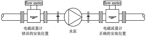 (3)管道式電磁流量計廠家附近需裝閥門時,閥門應裝于流量計的下游。