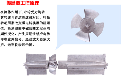 渦輪流量計采用渦輪進行測量。它先將流速轉(zhuǎn)換為渦輪的轉(zhuǎn)速,再將轉(zhuǎn)速轉(zhuǎn)換成與流量成正比的電信號。這種流量計用于檢測瞬時流量和總的積算流量,其輸出信號為頻率,易于數(shù)字化。圖中感應(yīng)線圈和永久磁鐵一起固定在殼體上。當鐵磁性渦輪葉片經(jīng)過磁鐵時,磁路的磁阻發(fā)生變化,從而產(chǎn)生感應(yīng)信號。信號經(jīng)放大器放大和整形,送到計數(shù)器或頻率計,顯示總的積算流量。同時將脈沖頻率經(jīng)過頻率-電壓轉(zhuǎn)換以指示瞬時流量。葉輪的轉(zhuǎn)速正比于流量,葉輪的轉(zhuǎn)數(shù)正比于流過的總量。渦輪流量計的輸出是頻率調(diào)制式信號,不僅提高了檢測電路的抗干擾性,而且簡化了流量檢測系統(tǒng)。它的量程比可達10:1,精度在±0.2%以內(nèi)。慣性小而且尺寸小的流量計的時間常數(shù)可達0.01秒。