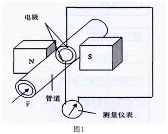 硝酸流量表的設(shè)計(jì)是根據(jù)法拉*電磁感應(yīng)定律,導(dǎo)管中導(dǎo)電的流體被看作導(dǎo)體,管道的內(nèi)徑可看作道導(dǎo)體的長,原理圖如圖1所示,兩電極裝到與管道的中心軸和磁場方向組成的平面相垂直,拾取液體產(chǎn)生的感應(yīng)電動(dòng)勢。感應(yīng)電動(dòng)勢為: