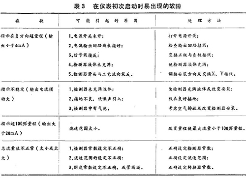 在儀表指示不正常時,可根據(jù)下面介紹的一些典型故障和處理方法進行必要的處理。這些故障可分為啟動時易產(chǎn)生的故障,正常運行時出現(xiàn)的故障和接地不良引起的故障(見表3、表4)。
