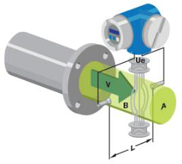 基本上,當(dāng)導(dǎo)電液體流過磁場時(shí),會(huì)感應(yīng)出電壓。為了測量該產(chǎn)生的電壓(與流動(dòng)的液體的速度成正比),使用了兩個(gè)彼此相對安裝的不銹鋼電極。