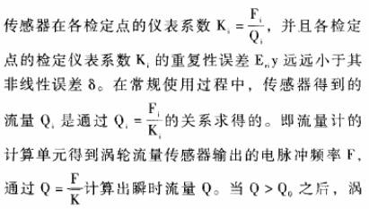 對于重復性很好而線性度較差的渦輪流量傳感器,要擴大其測量范圍或減小測量誤差,研究的核心問題是設計一-種便捷的使用方法,按照行鑒定規(guī)程利用原有檢定數(shù)據(jù),使渦輪流量傳感器在具有很小重復性誤差的流量范圍內(nèi),都能得到很準確測量效果。