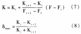 輪流量傳感器的儀表系數(shù)K與Q的關系近似線性的單調(diào)函數(shù)(見圖2)。因此,在對檢定結果進行處理時,直接將各檢定點的檢定結果以Fi、Ki的形式存入二甲苯流量計的數(shù)值運算部分,不必對其儀表系數(shù)取平均值。在使用渦輪流量傳感器進行流量測量時,根據(jù)渦輪流量傳感器的信號頻率F,即可在以上檢定結果中檢索各F,值,找出滿足F,≤F≤F的Fi、Fi+1(i=1,2,.,.n-1),n是該渦輪流量傳感器的流量檢定點數(shù);若信號頻率F=Fi或F=Fi+1,則相應的Ki或K.i+1即為所需的儀表系數(shù);若信號頻率Fi