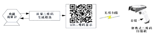 二維碼生成模塊定時向高壓電磁流量計(jì)發(fā)送采集指令,后者收到指令后發(fā)送流量數(shù)據(jù)。