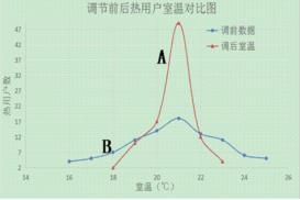 我公司在該小區(qū)管網(wǎng)改造前,在不同單元不同樓層分別安裝100臺(tái)室溫采集器。智能蒸汽流量計(jì)調(diào)前數(shù)據(jù)采集于2017~2018年供熱期,調(diào)后數(shù)據(jù)采集于2018~2019年供熱期。經(jīng)過兩個(gè)采暖期,共有96臺(tái)室溫采集器可以正常提供數(shù)據(jù)。數(shù)據(jù)分析結(jié)果見圖3所示。