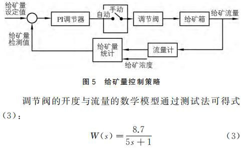 以式(3)為基礎(chǔ),對(duì)給礦量進(jìn)行 PI調(diào)節(jié),實(shí)時(shí)控制調(diào)節(jié)閥的開度,并對(duì)給礦量進(jìn)行精確控制。