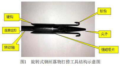 在注水井分層測試工作中鋼絲落物打撈一直是困擾采油測試工的一大難題,據(jù)不完全統(tǒng)計因井下落物而造成作業(yè)重配的注水、注聚井中絕大部分是鋼絲落物造成的,占總落物重配作業(yè)井?dāng)?shù)的50%以上。造成這一現(xiàn)象的主要原因是絲落物不容易被抓牢而且上提打撈到的鋼絲容易形成較大的鋼絲團(tuán),堵塞上提通道,造成二次落物,打撈失敗。因此,加工通用的有效的鋼絲落物打撈工具,制定合理的打撈方案是提高打撈鋼絲落物的成功率的關(guān)鍵。