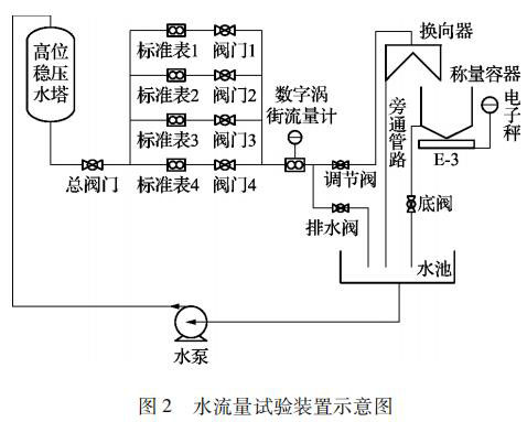 在試驗(yàn)裝置管路出口處裝有換向器,用來(lái)改變流體的流向,使水流入稱(chēng)量容器或者旁通管路而不改變流量。換向器啟動(dòng)時(shí),觸發(fā)計(jì)時(shí)控制器,以保證水的重量和時(shí)間的同步測(cè)量。