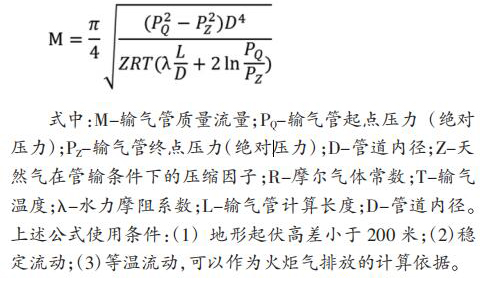 天津 LNG 設(shè)置兩座電磁流量計,單臺設(shè)計處理量 60t/h, 兩臺火炬并列運(yùn)行,一用一備。自 LNG 儲罐及 BOG 系統(tǒng)來的超壓 BOG 經(jīng) PV 閥后進(jìn)入火炬氣排放總管,經(jīng)分液罐沉淀 BOG 中夾雜的液滴后進(jìn)入火炬燃燒放空。 測水電磁流量計設(shè)置四級排放,具體設(shè)置如表 1。 2 火炬氣排放量計算方法根據(jù)水平輸氣管流量計算基本公式: