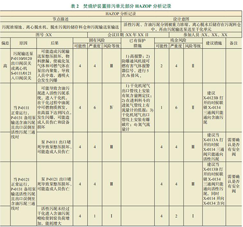 本次分析組的主要人員有:企業(yè)氫氣流量計分析組以及焚燒爐裝置工藝工程師、設備工程師、儀表工程師、安全工程師和操作班組長。本次分析主要依據(jù)公司級相關標準和規(guī)范:《健康安全環(huán)境風險標準》以及《危險與可操作性分析(氫氣流量計)規(guī)范》,并于 1 個月內(nèi)對焚燒爐裝置進行了分析,發(fā)現(xiàn)了部分重大的風險和隱患。按建議措施對應的風險等級劃分,其中包括:Ⅳ級嚴重風險(限期整改強制性措施);Ⅲ級高度風險(限期整改強制性措施);Ⅱ級中度風險(期望改進推薦性措施);Ⅰ級可接受風險(建議性措施)。本報告僅逐一列出部分較高或容易忽視的風險(其他在氫氣流量計分析的記錄中體現(xiàn))。評估發(fā)現(xiàn):本次分析評估共發(fā)現(xiàn)三級風險 25 項(類),其中排污單元三級風險 2 項(類)。其中,焚燒爐裝置排污單元分析記錄內(nèi)容如表 2 所示。