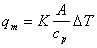 消耗功率p和溫度差δt如式3所示比列關(guān)系,式中b, c, k均為常數(shù),k在?~?之間。從式2便可算出質(zhì)量流速,乘上點(diǎn)流速于管道平均流速間系數(shù)和流通面積的質(zhì)量流量qm,再將式3變換成式4。