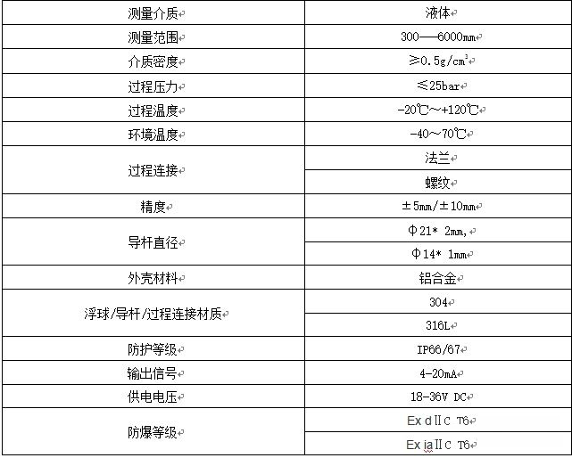 二、浮球式液位計的參數(shù)