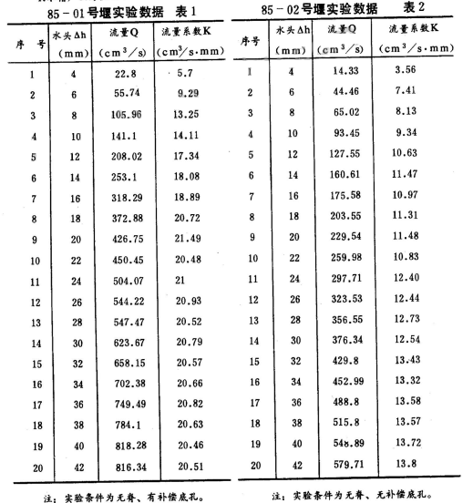 2.無補(bǔ)償?shù)卓椎碾p曲線無脊薄壁堰,見圖8,其流量與作用水頭之間變化關(guān)系基本上是線性的,流量系數(shù)K值隨作用水頭升高略有增大。